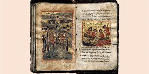 “Archaic Mark” is written in minuscules (lower case Greek letters) on forty-four parchment leaves and contains sixteen hand-painted color illustrations. The number 2427 refers to its designation in the Gregory-Aland numbering system used by the Institute for New Testament Textual Research in Muenster, Germany for cataloging New Testament manuscripts.